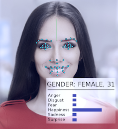 A face tracking and analysis system takes a look at a woman’s face. Abyssus/Wikimedia Commons, CC BY-SA